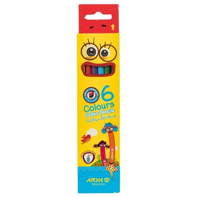 مداد رنگی 6 رنگ مقوایی کوتاه آریا
