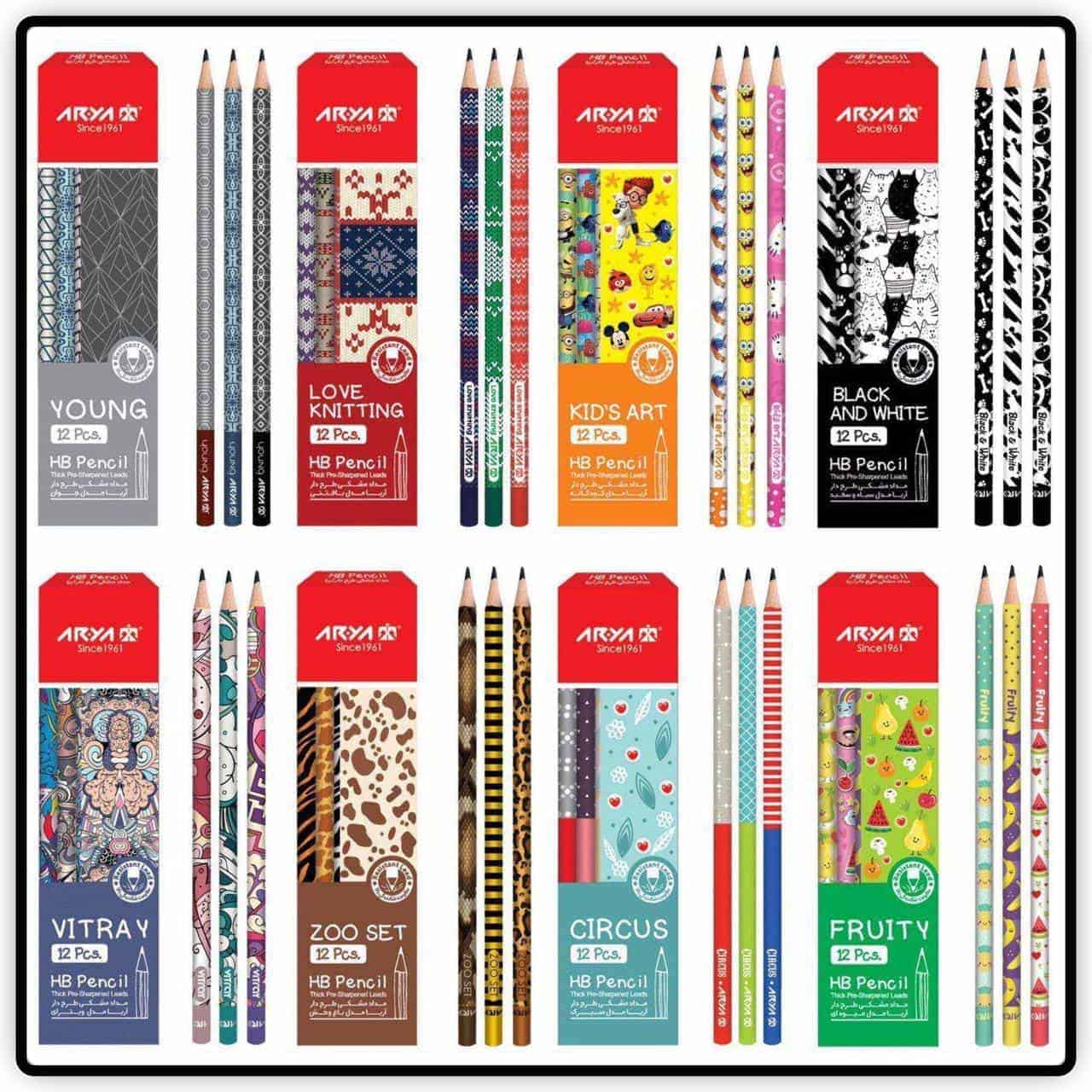 مداد مشکی طرح‌دار ۱۲ عددی آریا